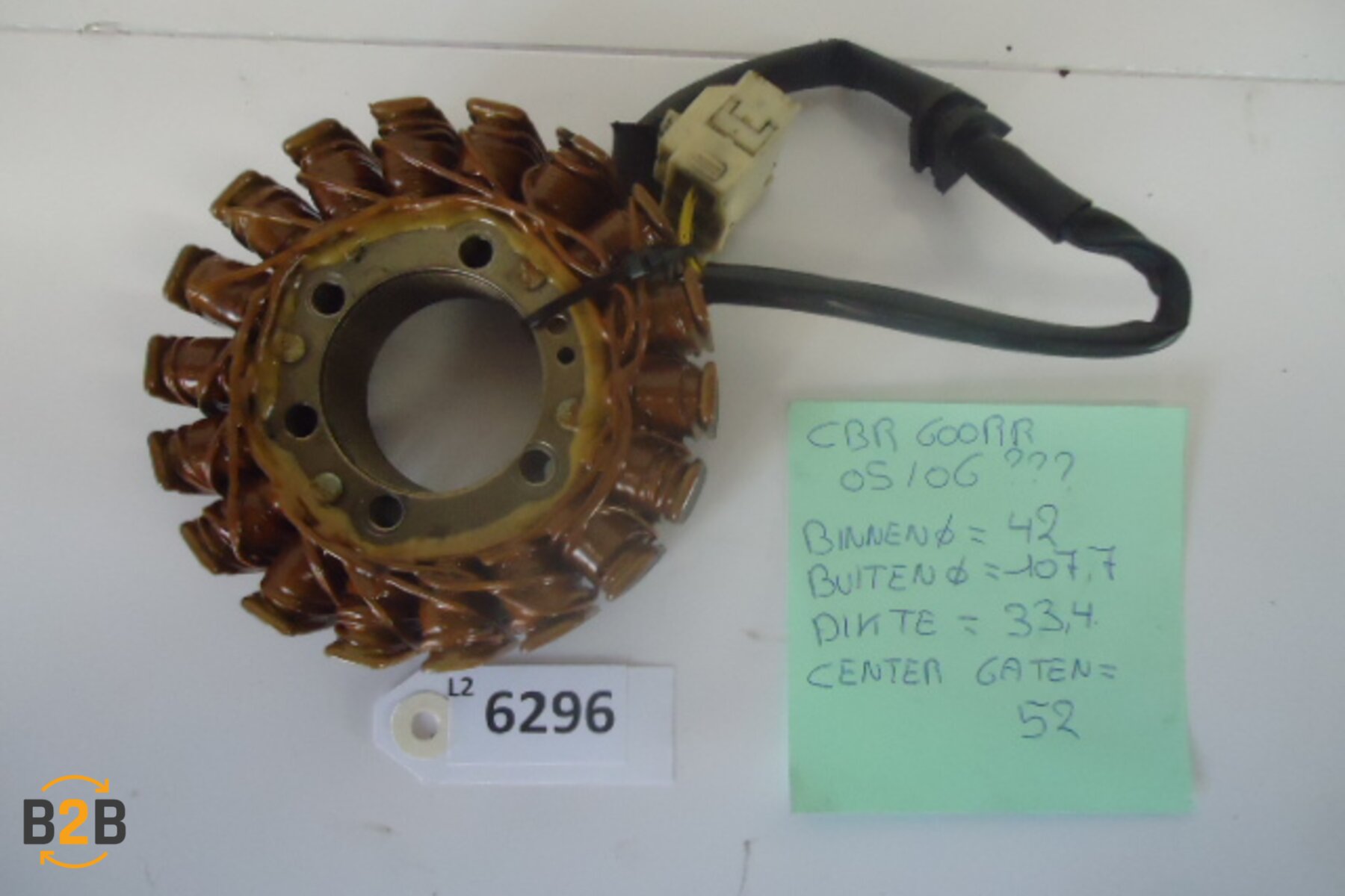 | Hinweis | Niet zeker van model. binnendiameter : 42 mm buitendiameter : 107.7 mm dikte : 33.4 mm centergaten : 52 mm |