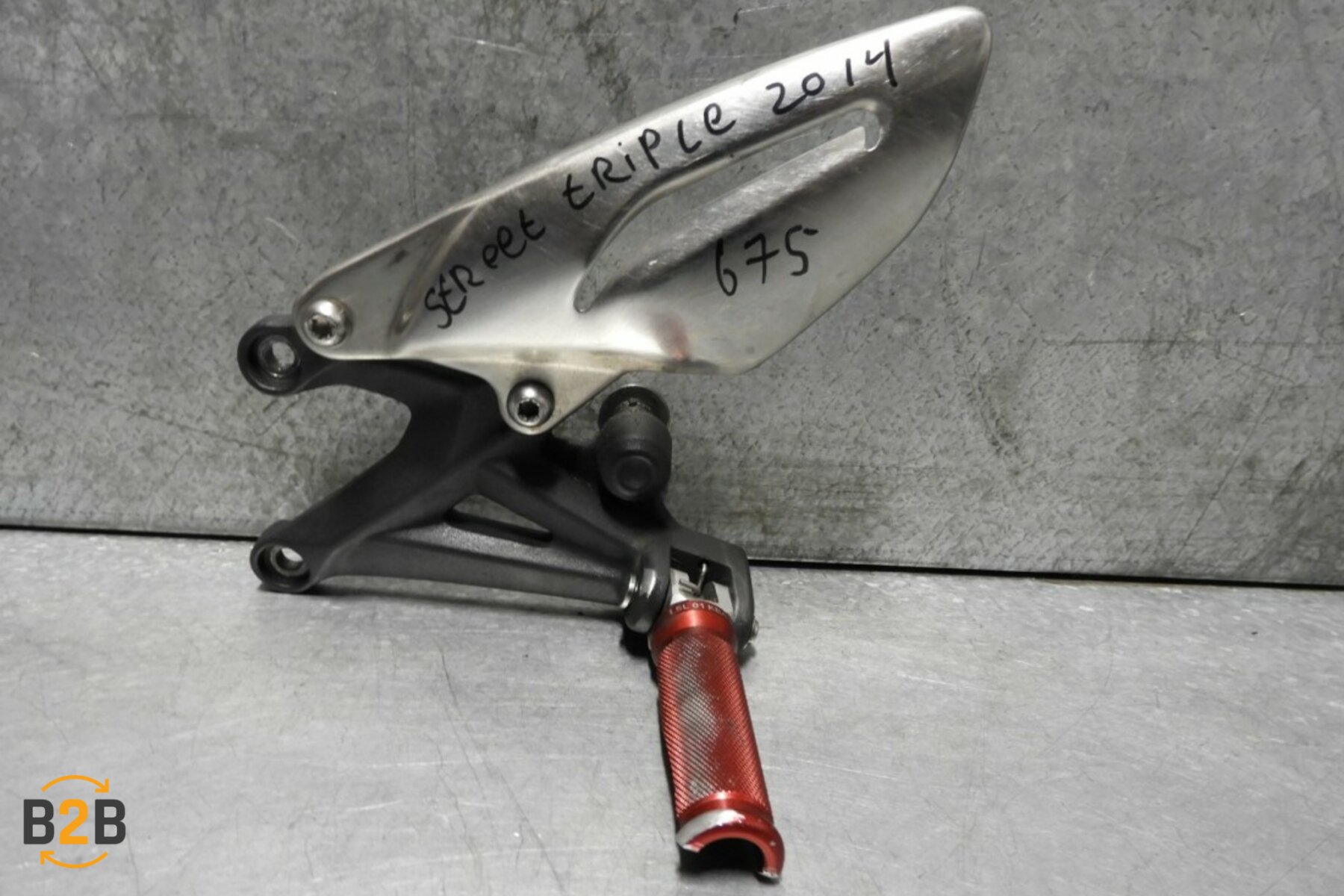 | Note | Originele linker voetsteun / schetsplaat voor de Triumph Street Triple 675, bouwjaar 2013 TM 2017.Deze is 100% recht.Voetstepje heeft wel wat lakschade aan het uiteinde, zie foto's. |