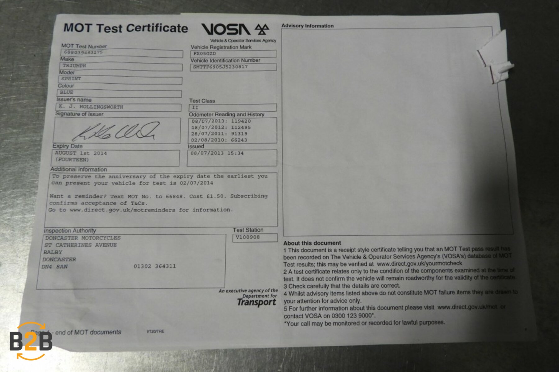 | Note | Frame voor de Triumph Sprint 1050 GT, past in bouwjaar 2005 TM 2010.Net schadevrij frame, geven er garantie op dat deze 100% recht is.Bouwjaar op papier is 2005 en er zitten UK papers bij. |
