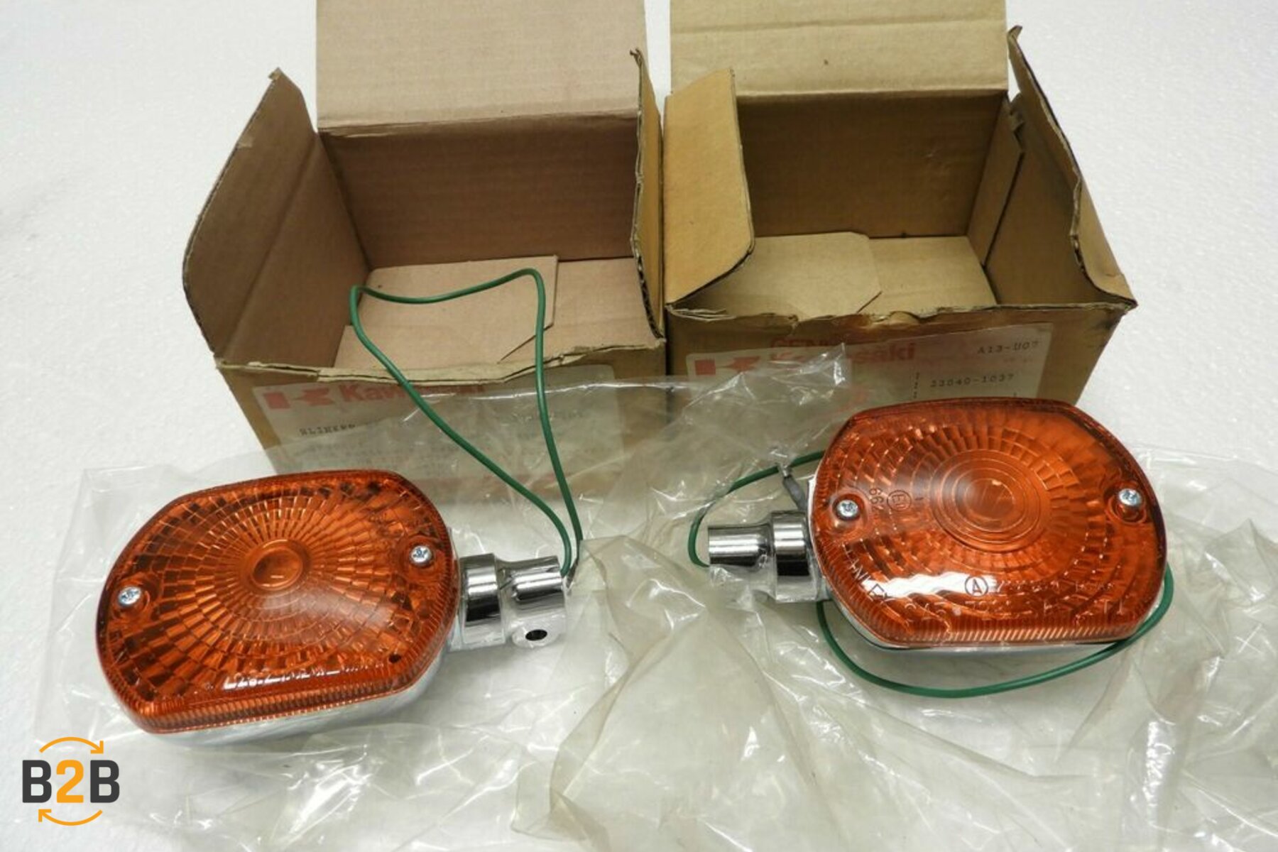 | Note | OEM new rear turn signal indicator set for the Kawasaki KH125.Part numbers are 23040 1037 and 23040 1038.New in the box and the price is for the set of 2. |