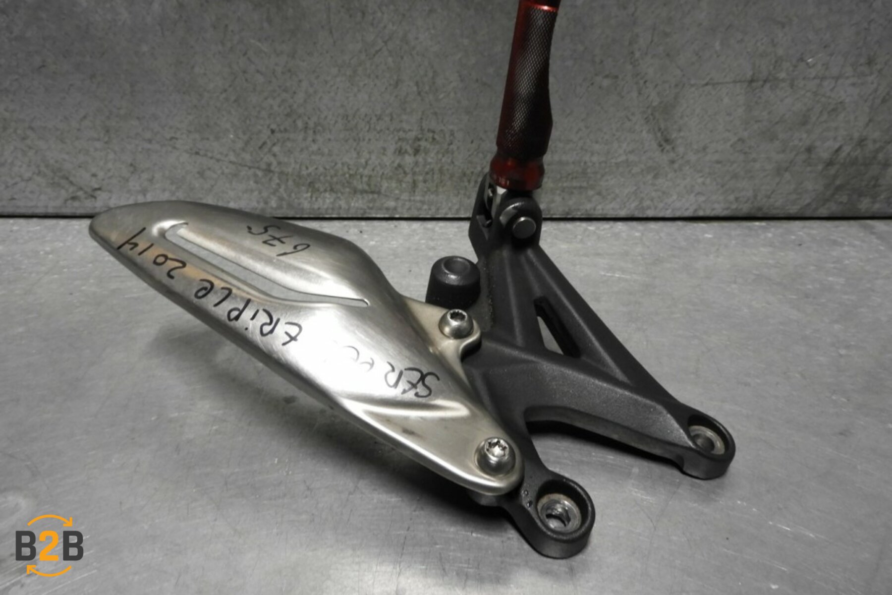 | Opmerking | Originele linker voetsteun / schetsplaat voor de Triumph Street Triple 675, bouwjaar 2013 TM 2017.Deze is 100% recht.Voetstepje heeft wel wat lakschade aan het uiteinde, zie foto's. |