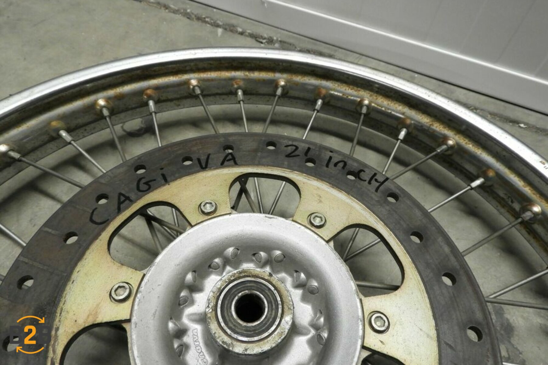 | Opmerking | Original front wheel for the Cagiva 600 W16, fits on year 1994 to 2001.100% damage free and straight.Comes complete with good brake disc. |